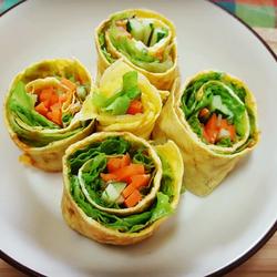 6. Put the above ingredients on the egg cake in turn and roll it up.I forgot to take a picture of the finished product