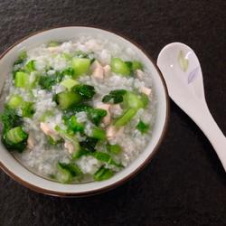 6.Before the porridge is cooked, add in and cut it of cabbage, cook for another two minutes