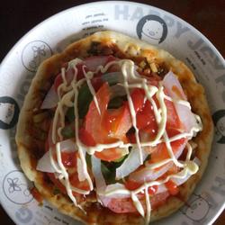 After taking it out of the oven, put on your favorite pizza sauce, tomato sauce or salad dressing!