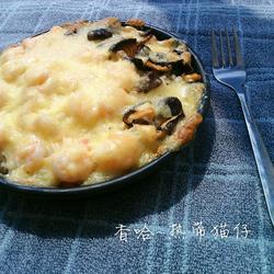 6.Put the shrimp and mushrooms on top and arrange them.