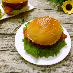 8.Cut the burger embryo into two and apply a layer of salad dressing on the bottom of the burger