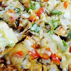 10.Put the bell peppers and onions on top, and sprinkle with a layer of cheese.