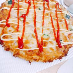 7. Spread the shrimp and small tubes of dry water on the pizza, and sprinkle with diced cucumber