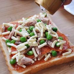 This toast pizza is perfect for eliminating ingredients at home.This method was demonstrated in the Japanese drama "Hana no Lazy Cuisine", but remember not to use high-moisture ingredients, otherwise the bottom of the bun will not be so crispy! The ingredients on the toast can be substituted according to personal preference.