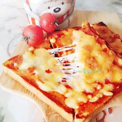 1.Get the toast ready Spread a layer of tomato sauce on slices of bread