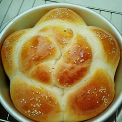 3. Preheat the oven for ten minutes, upper and lower heat, 160 degrees and 130 degrees, a total of 40 minutes ( Set the temperature according to your own oven (there will be differences due to baking error).Brush with egg wash and add sesame seeds after baking for 25 minutes.This is how it will look when baked.