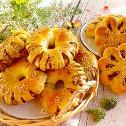 12.This is another way to make flowery bread.Wrap the stuffing, press flat, and cut into eight pieces.Divide, do not cut off the middle connection, as shown in the picture, then twist each petal upward, it will be a bread flower