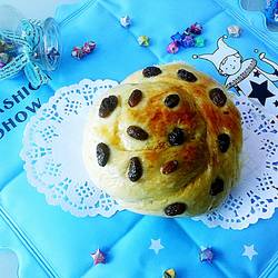 9. Take it out and brush it with egg wash and put raisins on it.At the same time, preheat the oven to 180 degrees for 10 minutes