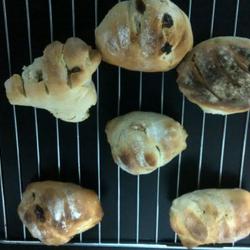 3.Spread the dough and roll the raisins and walnuts into the dough.