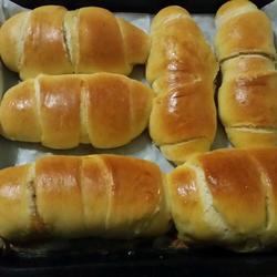 1. Stir the low flour into olive oil and form a dough in the refrigerator for 2-3 hours.Peel and core the apples and fry them in a pan with butter until soft.Add 250 grams of bread flour.Start the dough making process with 80 grams of milk, yeast, salt and sugar.Once the dough is risen, divide it into 6 equal portions.Wrap in the cooled applesauce, then spread the puff pastry evenly on the surface and roll it up