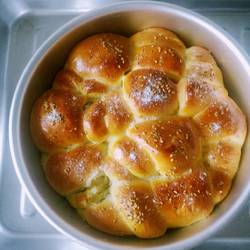 4. Take out the divided dough and make the fillings you like.shape, after all the dough is made, place it in a baking pan for secondary fermentation, until it doubles in size, brush with egg wash, and sprinkle with white sesame seeds