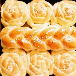 The square is in the shape of 9 flowers.If you want the same effect as the picture, make 6 flowers first.flowers, and then combine each two of the remaining small dough into one, roll it into a long strip, or braid it.After braiding, fold the head and tail down, pinch it tightly, and braid it into a double layer.