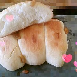 5. Preheat the oven to 180 degrees and bake at 180 degrees up and down for 15-20 minutes.Take it out halfway through baking, brush the surface with egg wash, and sprinkle some raisins for decoration.Continue to bake until the time is up and the finished product comes out of the oven.