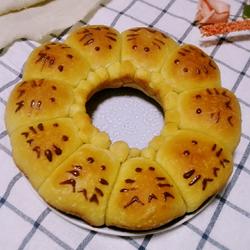 12. Leave the oven to cool, and use a chocolate pen to draw the eyes, beard, and dragon of Totoro.Cat bread is done!