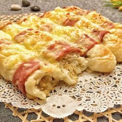 10. Cut the bacon, Place evenly on the bread dough for secondary fermentation
