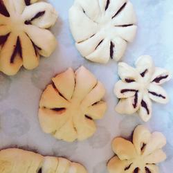 1.In addition to the above, put the butter into the bread machine and knead the dough for half an hour.After half an hour, add the softened butter.ps: Put the salt and sugar diagonally, and put the yeast powder in the middle.The dough mixing process takes one hour in total.Then put the noodles in a warm place to ferment 2.5 times in size.Divide the dough into 12 portions.Exhaust for fifteen minutes.