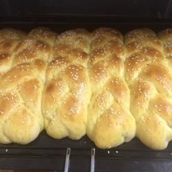 9.After fermentation, brush with egg wash and sprinkle with sesame seeds.Preheat the oven to 180 degrees, put it in the middle layer and bake for 15 minutes.Take it out, brush with a thin layer of butter and bake for another 15 minutes.It’s out of the oven