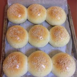 6. After fermentation, brush a layer of whole egg liquid and dip in a little white sesame seeds.Place in the oven at 180 degrees for 18 minutes.