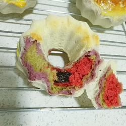 3. Take a portion of the dough and mix it with purple sweet potato puree.If the purple sweet potato puree is too wet, you can add dry Flour conditioning.