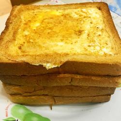 5.Fry the eggs until the egg liquid is solidified, then cover with the cut bread slices