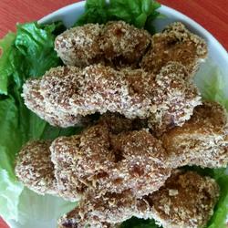 7.When the meat is fragrant and the bread crumbs are brown, heat the oil and put it on a plate.When it’s cold enough not to be hot, you can enjoy the delicious food!