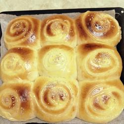 12.Take a small, relaxed dough and use a rolling pin to roll it into a round cake with a slightly thick center., put the red bean filling in the middle, wrap it up and make it into a round shape, put the bun side down into the baking pan, and do everything in sequence.
