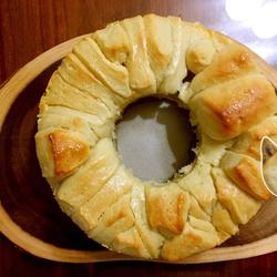 16.The fermentation is completed, brush the surface with butter and condensed milk