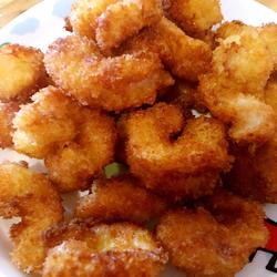 1. Wash the shrimps and remove the intestines from Cut it in the middle and coat it all with flour
