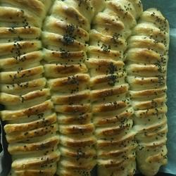 Take out the egg wash and sprinkle black sesame seeds.Preheat the oven to 180 degrees.