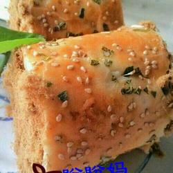 4. will ferment again Take out the dough from the baking pan, smear with egg liquid and sprinkle with chopped green onion