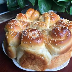 15. Brush the surface of the fermented bread dough with egg liquid and sprinkle with sesame seeds.Place in preheated oven.