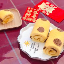 19. Spread your favorite sauce on the reverse side of the pattern and use a rolling pin to roll it up.I used Kewpie Orange Sauce, you can put any sauce you like.