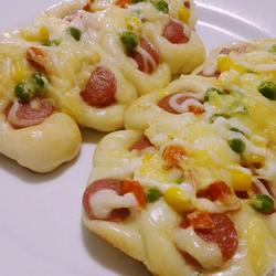 14. Then put the shredded cheese on it, and finally squeeze the salad dressing on the surface! Preheat the oven in advance and bake at 18 degrees for 20 minutes!