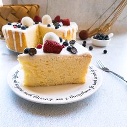 16.Pour the yogurt into a piping bag, cut a small opening, squeeze it onto the chiffon cake, and put some fruit