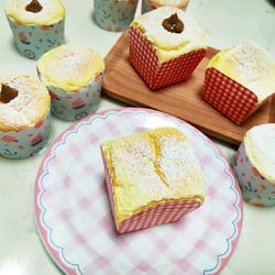 4. Pour the mixed batter into the paper cup prepared in advance, until it is 80% full.Gently shake out the air bubbles.Place on the baking sheet, leaving a slight gap, for 15 to 20 minutes.The square one takes two to three minutes longer than the round one