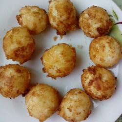 6.This is what the rice balls wrapped in egg liquid and bread crumbs look like