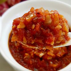 7. Add salt, sugar and tomato paste, stir-fry evenly, reduce to low heat and simmer for a few minutes Until the soup becomes thick.