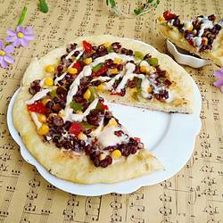 4. Take advantage of the fermentation time to prepare pizza filling: honey beans, cooked corn kernels, Preserved fruit, banana slices.