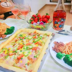 Bake the dough in the oven for five minutes before brushing it with pizza sauce.The ingredients are not easy If you put too much, you can observe the heat during the baking process.If the cheese has turned yellow, you can lower the temperature appropriately.