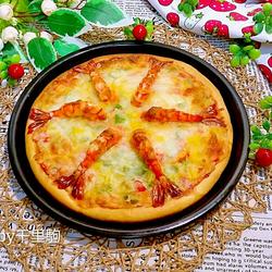 18.The finished product after coming out of the oven is beautiful, the bacon and prawn pizza is completed