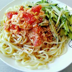 3.Dice tomatoes, shred cucumbers, and mix sesame paste