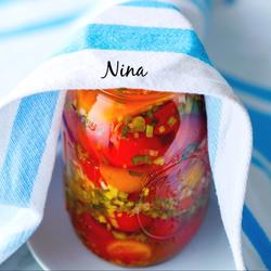 2.Put all the "a" ingredients and half of the diced bell peppers in a bowl Stir thoroughly and pour into a glass container 80% full.