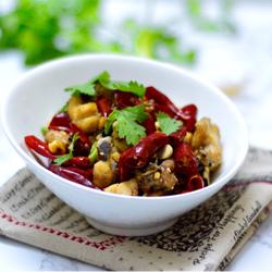 6. After the spicy and dried chili peppers are fragrant, add the fried chicken pieces and stir-fry for six After seven minutes, add the seasonings and when serving, sprinkle in the chopped peanuts and serve.