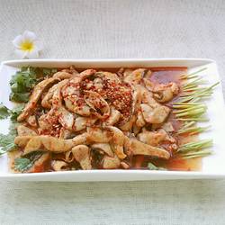 2.Use a razor blade to cut into thin slices.Add appropriate amount of starch, salt and cooking wine to marinate.