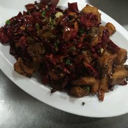 3. In a separate pot, stir-fry the dried chili peppers over low heat.Sauté until fragrant.