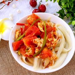 9.Put oil in the pot again.When the oil is hot, add the chopped green onion and ginger slices and sauté until fragrant.Pour in Add tomato cubes, stir-fry until the juice becomes liquid, add a little light soy sauce, salt and a little sugar.