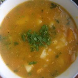 5. Cook the pumpkin and potatoes until After it is soft and glutinous, add a small amount of chicken essence and take the coriander out of the pot