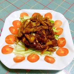 8. Spread the shredded pork on the shredded green onions and arrange on the plate.
