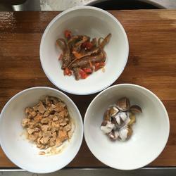 6.You can press it quickly with a spoon Make it into a puree, then mix it into three bowls to complete