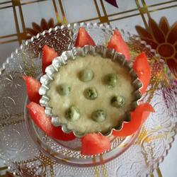 3. Brush the mold with oil, put the chicken on the bottom layer, put the prepared tofu on top, and sprinkle with green beans.